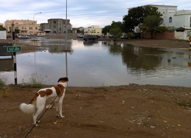 It rained again this afternoon, and promises to do more tonight and tomorrow…. about 10 cm… not the 23 cm they were forcasting for Old Muscat and Muttrah. I guess I won’t go to the souq for a few days, until it dries out. LOL