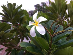 palm. We have all kinds of palms here – date, coconut and fan, but you also see the occasional small banana tree. I think this is wonderful… I’d love to have a palm tree in my yard, but unfortunately, it is all paving stones.