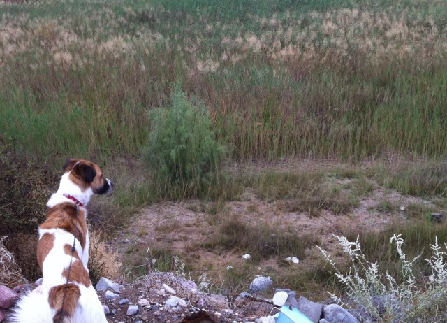 and in a few scattered places, there seem to be small stones standing up in the earth. Many don’t even have these markers, as they believe that a burial site should not be marked. There is a family of dogs living in this one… they often come barking when we pass by… this time they came quite