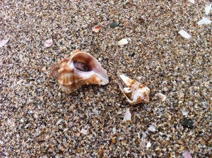 them in, and I was all set. I’ve learned a lot about shells and waves and beaches in the three months I’ve been here…. and I love them. Here are a few of my treasures…. still on the shore.