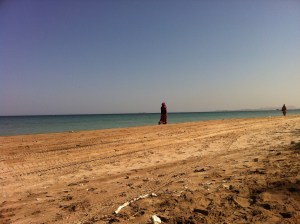 Or there are clouds out over the ocean, but the sun is hot and bright here. Sometimes it’s misty over the mountains.
