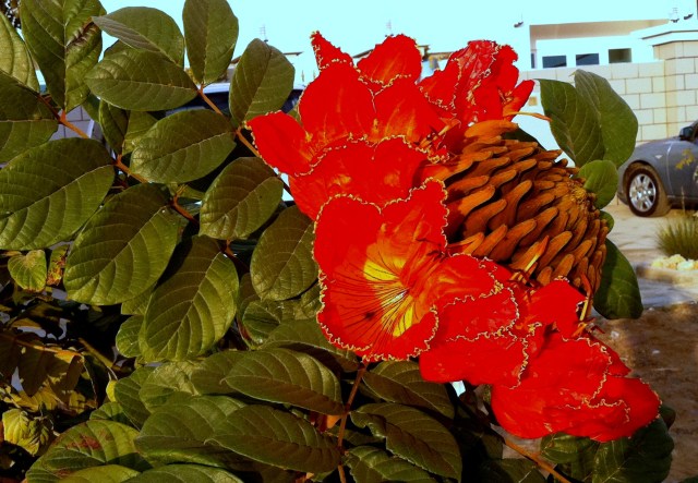 Around, the back of the same house, they had another, this one just coming into flower. Here is the flower bud… actually a whole “head’ of them…. it reminds me of an artichoke.