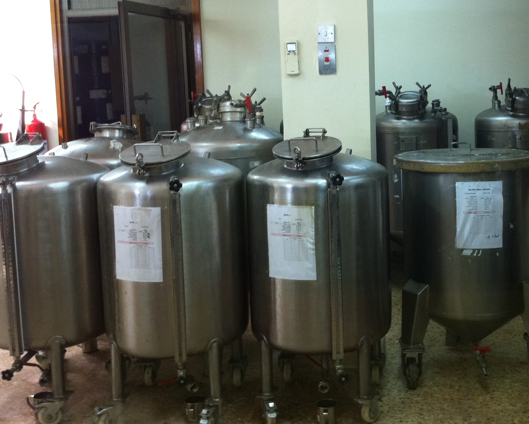Once we had seen all the products, which include not only perfumes but also creams, lotions, bath oils, candles and room sprays, we headed into the bowels of the factory.  We saw the rooms where the maceration vats are, the first about 17C and the second cooler.  There is the mixing room, with it’s scales and interesting little bottles on the shelves.  And, have you ever seen a PAIL of perfume before?