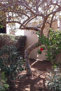 There are 120 different natural ingredients used – silver frankincense is one of the main ones. The most sought after frankincense has always been from Dhofar  in the southern part of Oman. In legend, so valuable were the frankincense trees, they were guarded by winged serpents.  This frankincense tree is planted just outside the Amouage showroom.