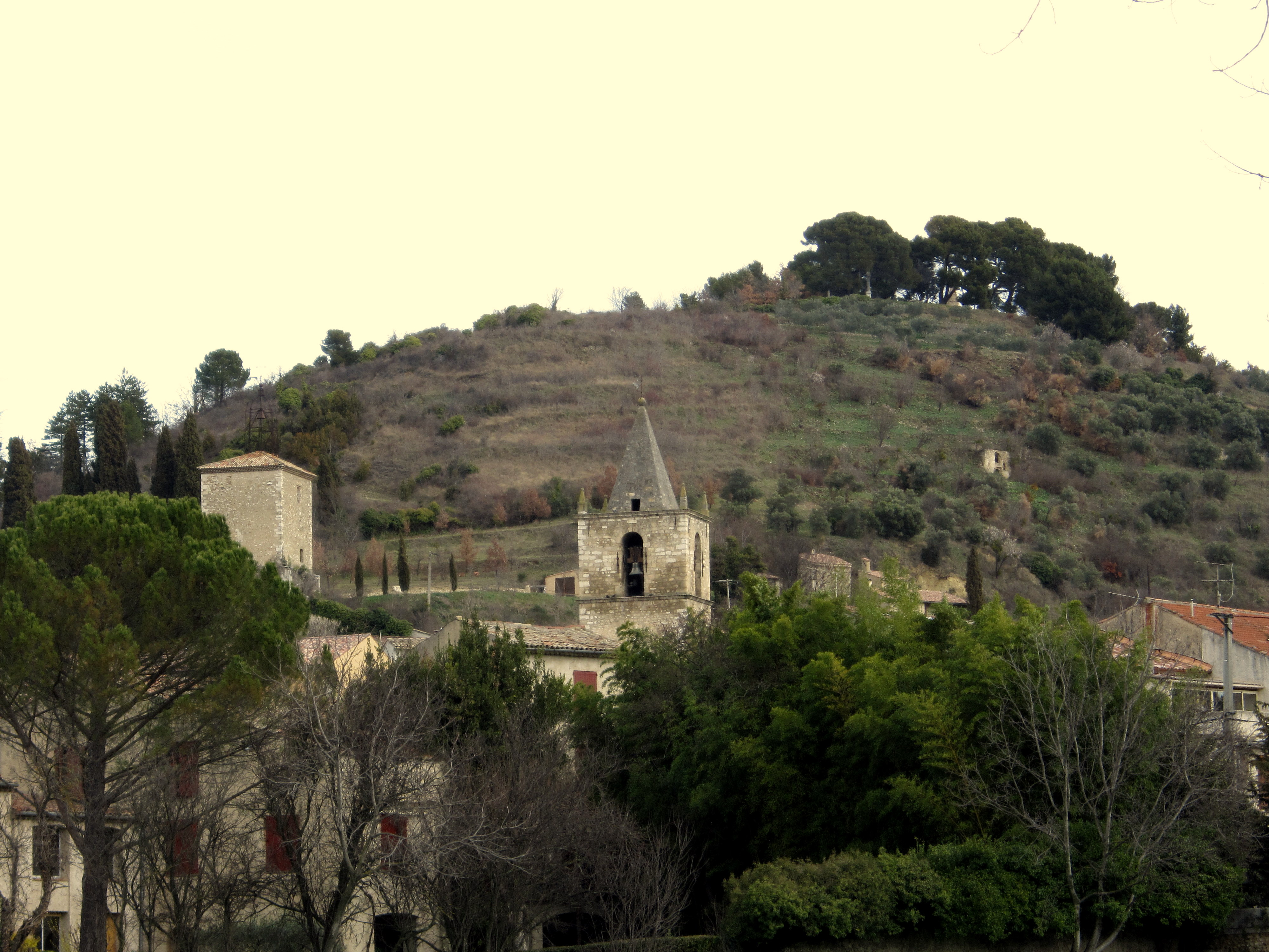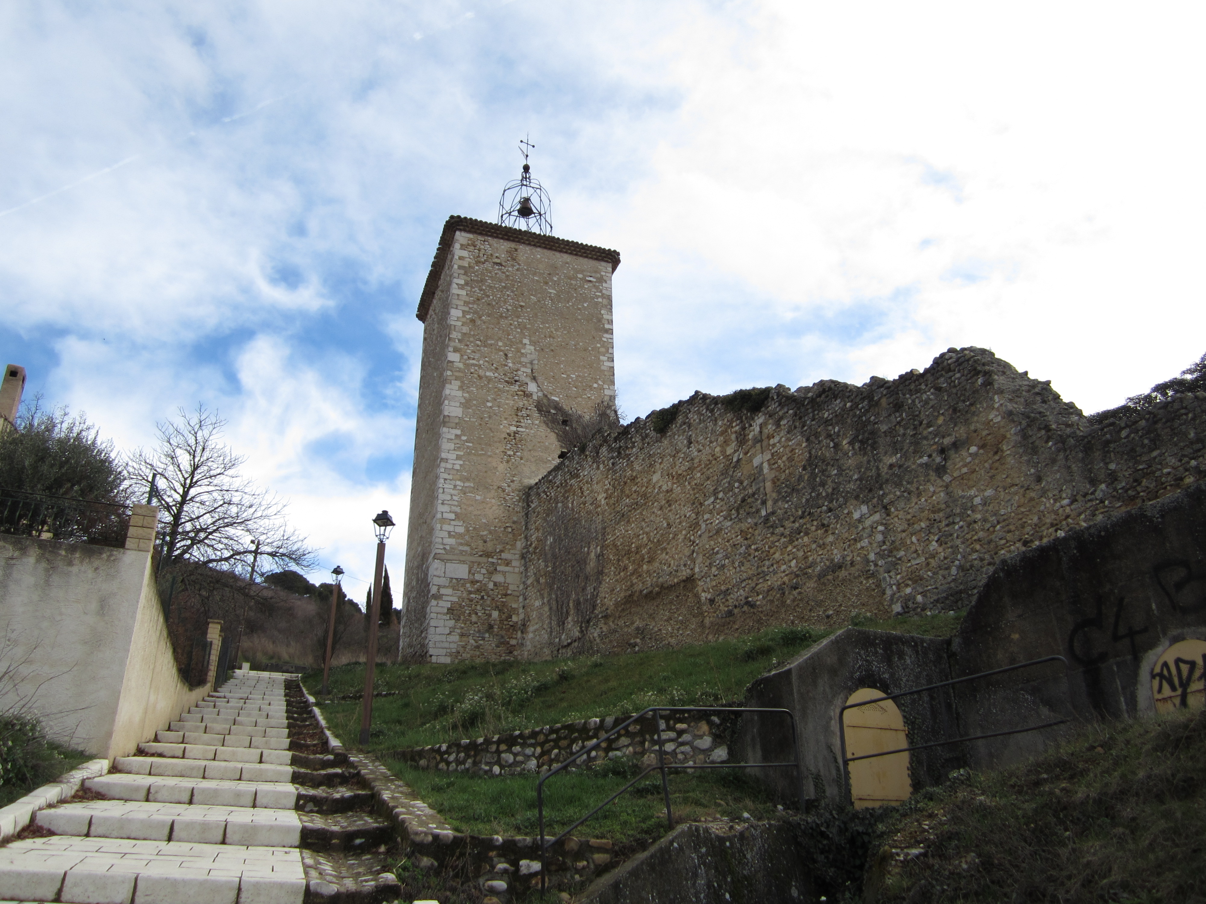 I followed the street, reading the small pamphlet I got at the tourist information centre (thankfully, in English). and when I reached the other gate, I turned right and climbed up along the old wall and to the clock tower.  The cage over the bell is something you see all over Provence.  They have a strong cold wind called a mistral which can happen any time of the year.  If the bell tower is enclosed it can be blown apart, the wind is so strong, hence the ironwork cage.