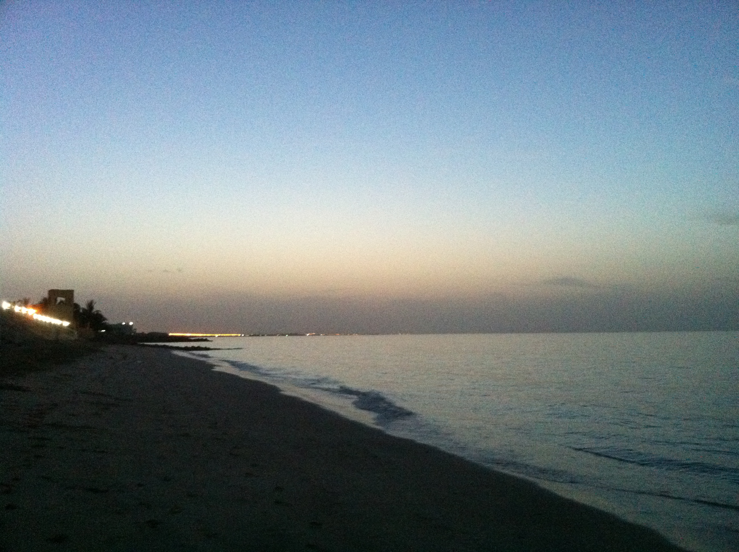 The other night we weren’t very hungry, so we went out to the Civil Aviation Club for a beer and spring rolls. After almost 4 years in Kuwait, it is still a novelty to actually be able to go out for a drink. and after over 4 years in the Middle East, sitting under a palm tree overlooking the ocean still hasn’t gotten old.