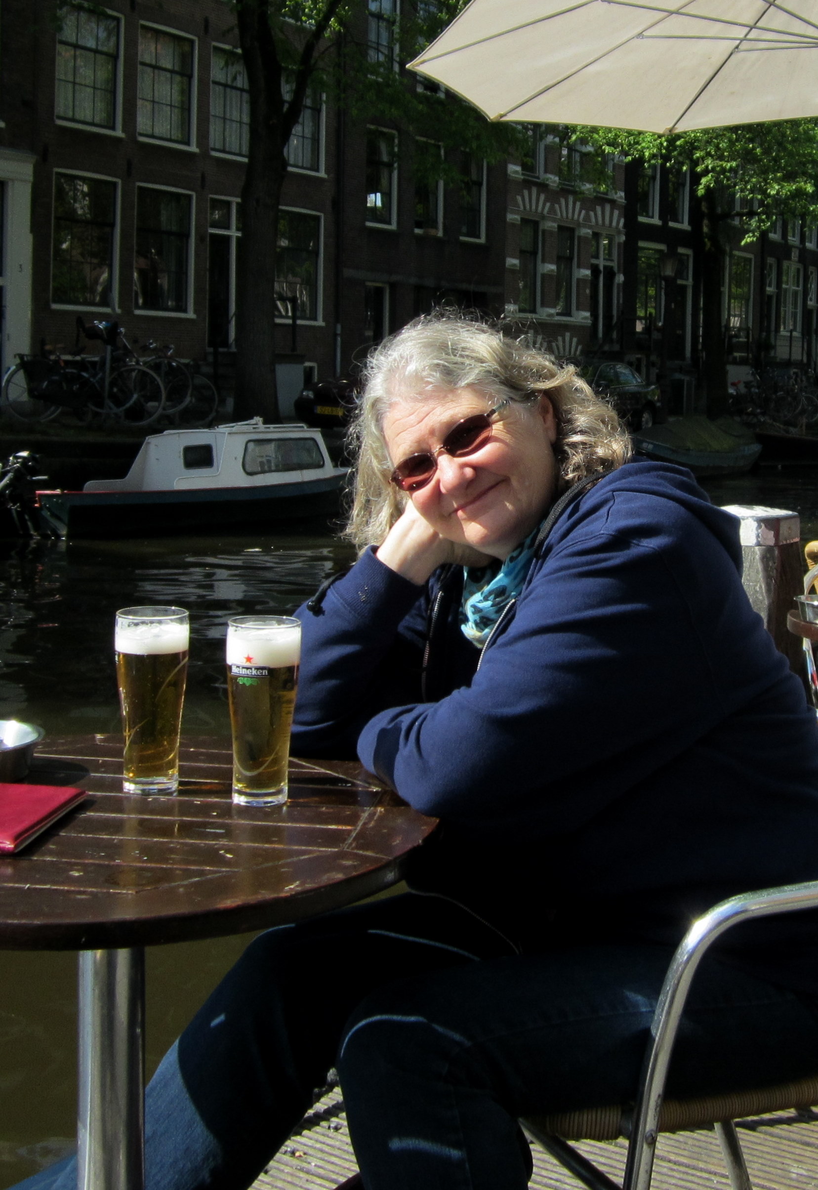 There are lots of lovely sidewalk cafes and bars – here is one by the canal.Only ONE of these beers was mine.