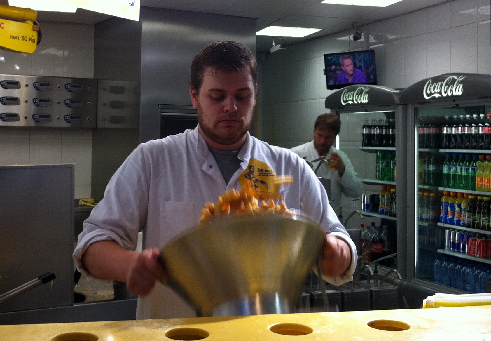 And fast food abounds as well. This place sells only french fries in paper cones – a small one was more than enough for us. I got mine with cheddar cheese – David got ketchup.