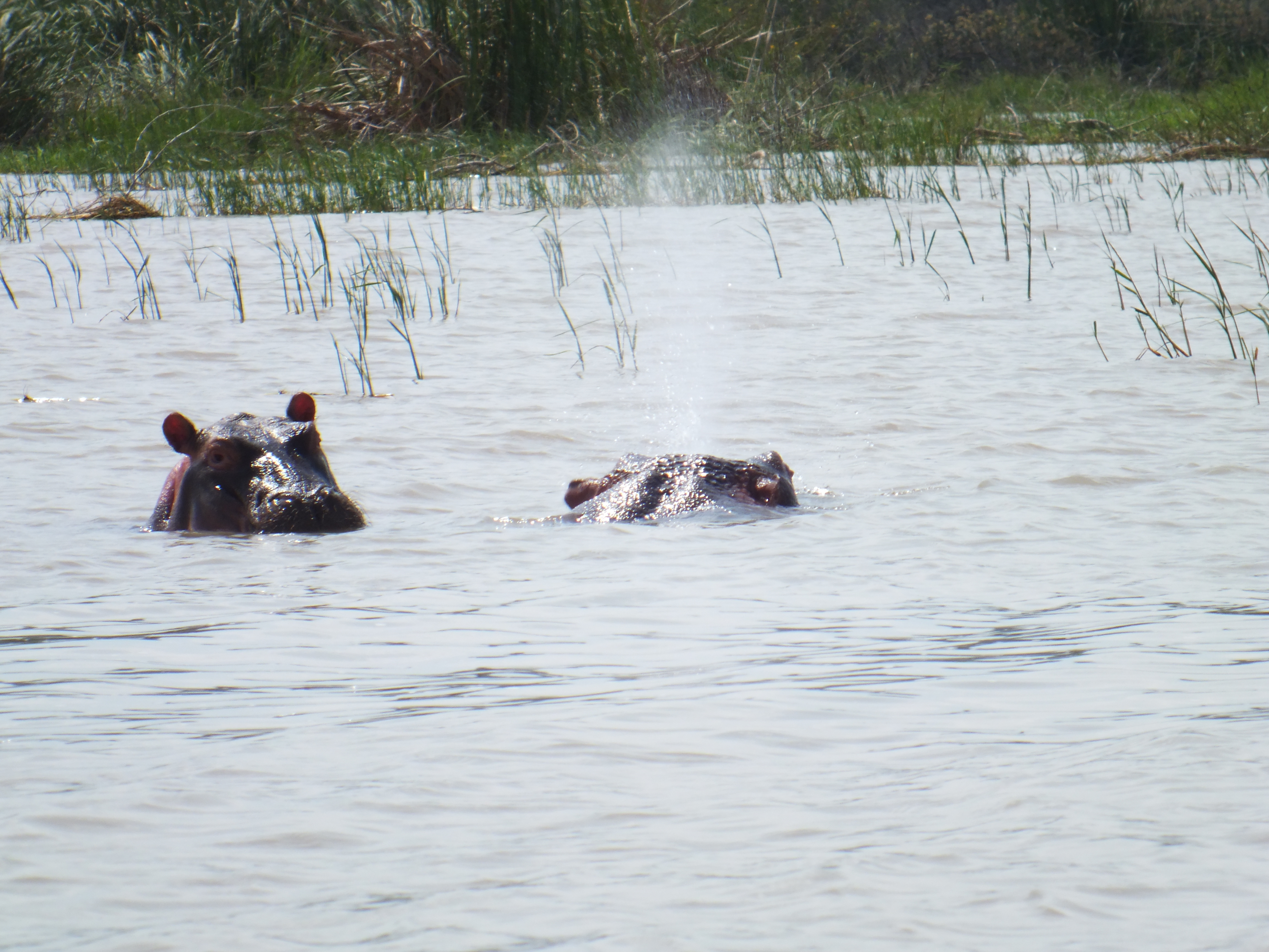 We did see them in the water in the morning, and heard them grunting during the night – they sounded much closer than they really were. Hippos only come out of the water at night, as their skin would crack in the heat of the sun. They are very large, and could easily destroy our boat if we annoyed them – which we DID NOT!