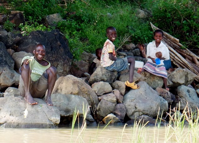 These children were fishing and playing along the shore – what lovely, shiny smiles.