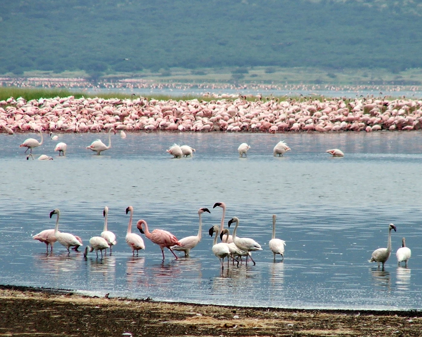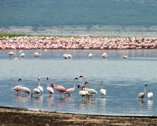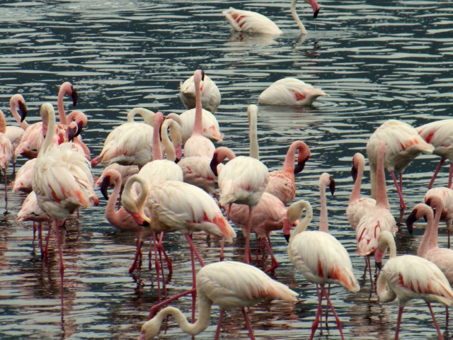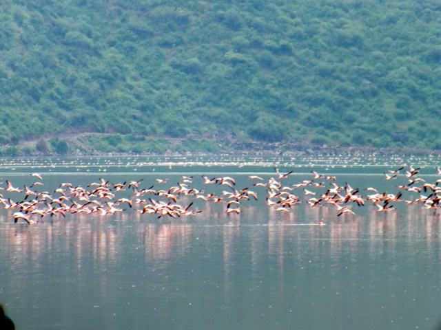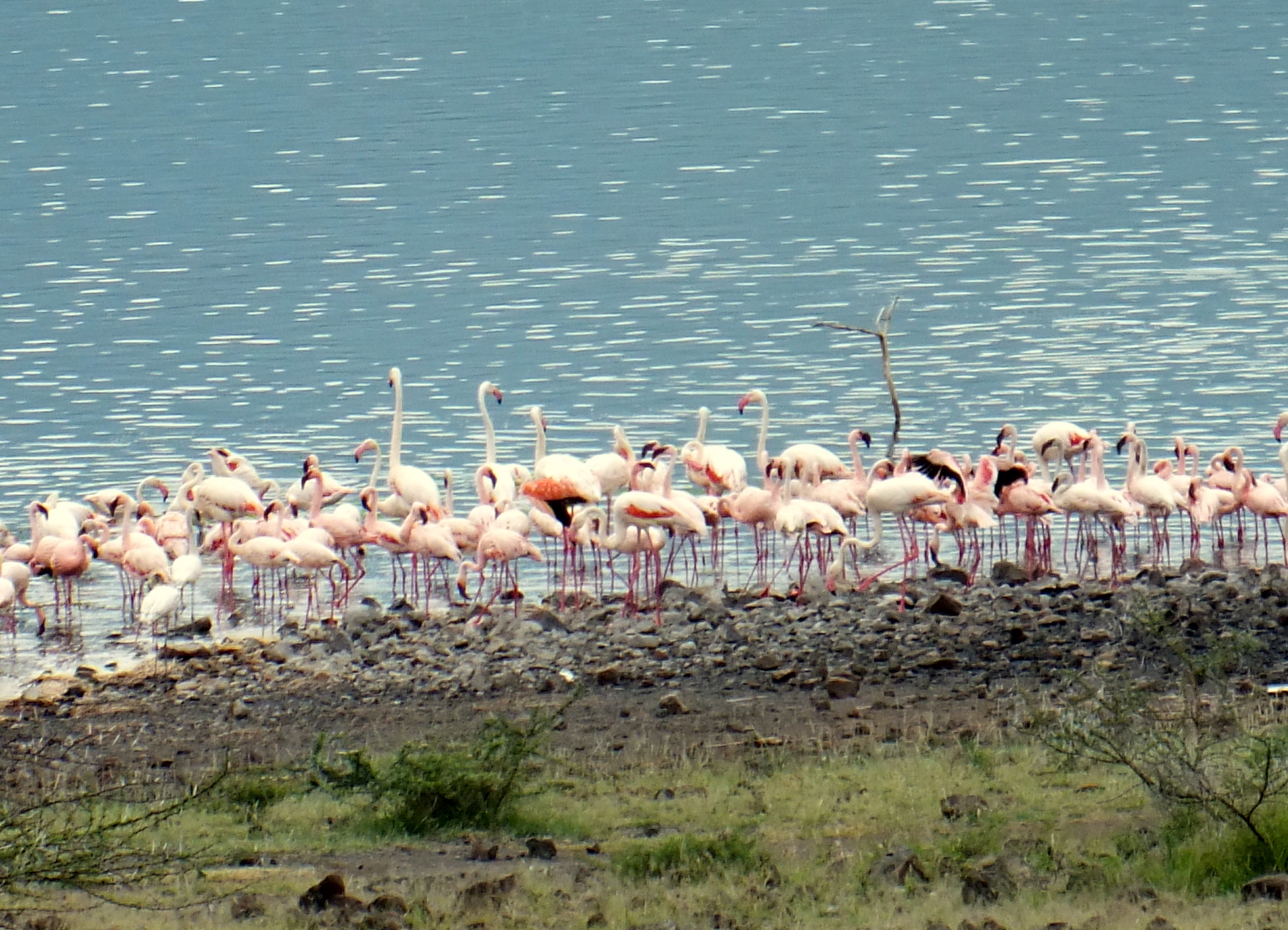 but it was PINK! All along the shore were great drift of flamingos – hundreds and thousands of them. We were allowed to get out and walk closer……. as we neared the birds on the edges lifted in flight –