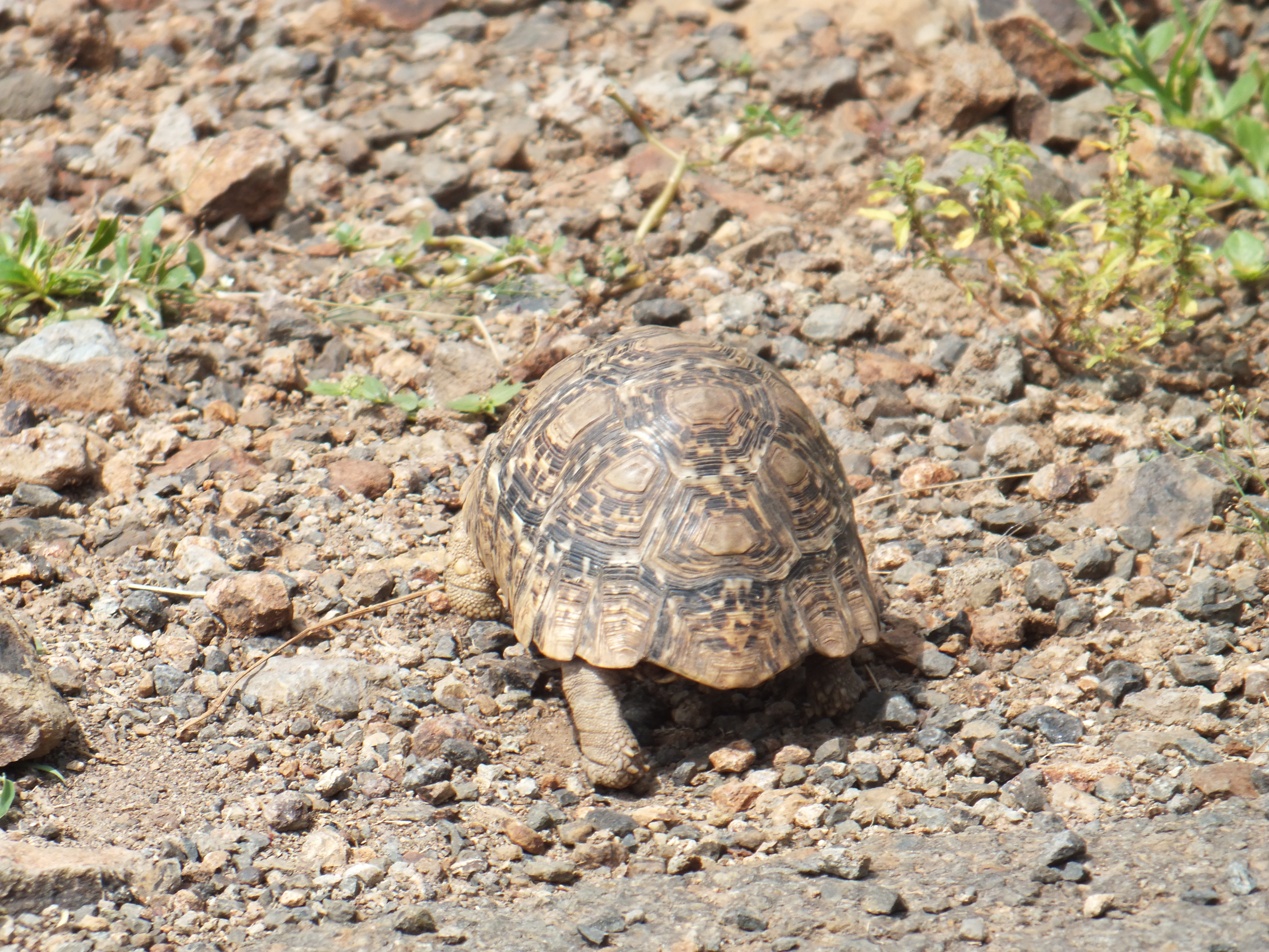 On the way we slowed down to watch this small leopard tortoise cross the road –