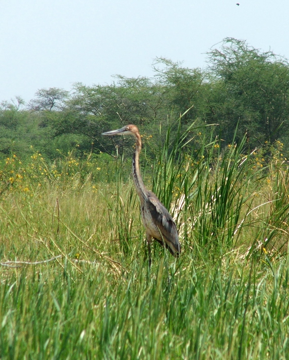 The ones I’m familiar with are all black except a bit of white on their throats – notice how the stripe along this guy’s tan head makes a perfect camouflage. It reminds me a bit of a bittern – they have stripes going up their throats, and when they try to hide, they just point their bill straight up and look like reeds – except if you are near, you see these little beady black eyes peering around the neck at you. We had one in our yard in Kuwait once, and it was quite amusing to see, especially as the camouflage didn’t work so well against white walls and green grass.