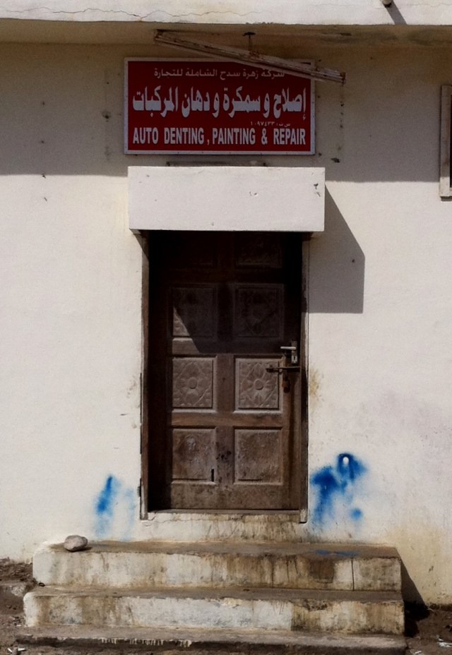 There was an auto body shop just across the road – we imagined that they were doing quite a good business with the roads the way they were. I saw this sign on a shop near where we parked the car……