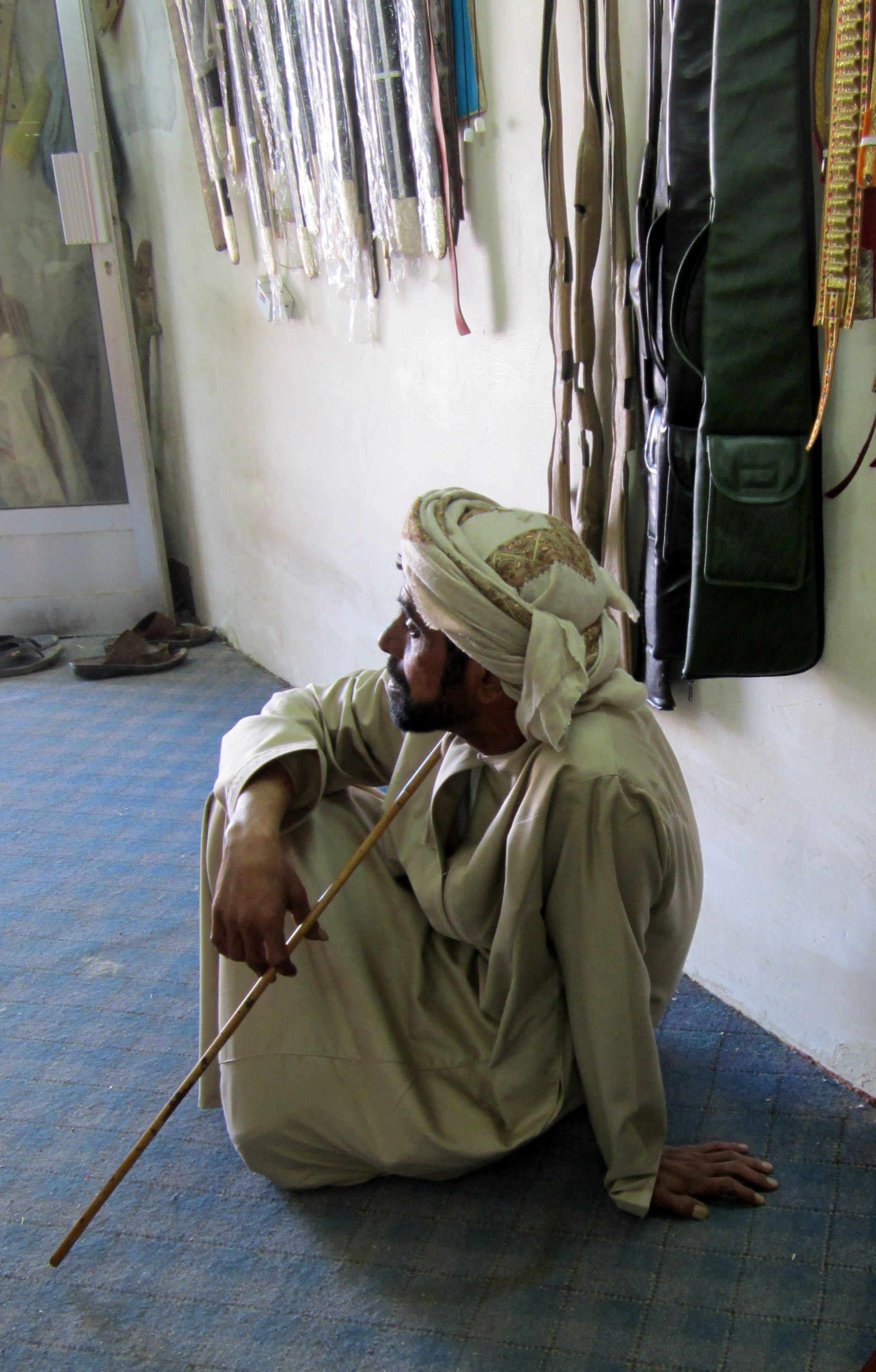 This young man was sitting in the shop, watching the proceedings – I’m not sure I even heard him speak other than to greet the shop owners. That is a camel stick in his hands – the men all seem to carry them. They are made of bamboo, and are so flexible that they will bend right into a circle. Some have silver tips and ornamentation.