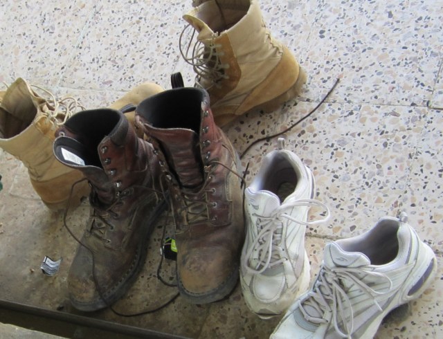 so we left our shoes there and went inside. And what did we see? There were a few guns