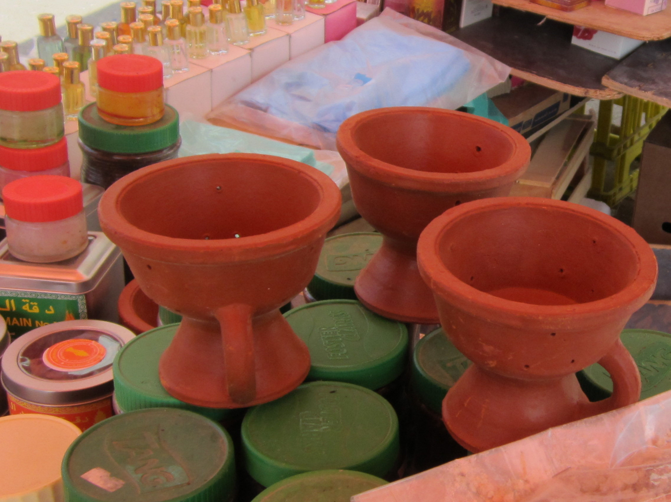 After we’d roamed the market for a while, we headed back to the car, through the clothing and housewares section.  We bought some of these incense burners – design distinctive to the Sinaw area –