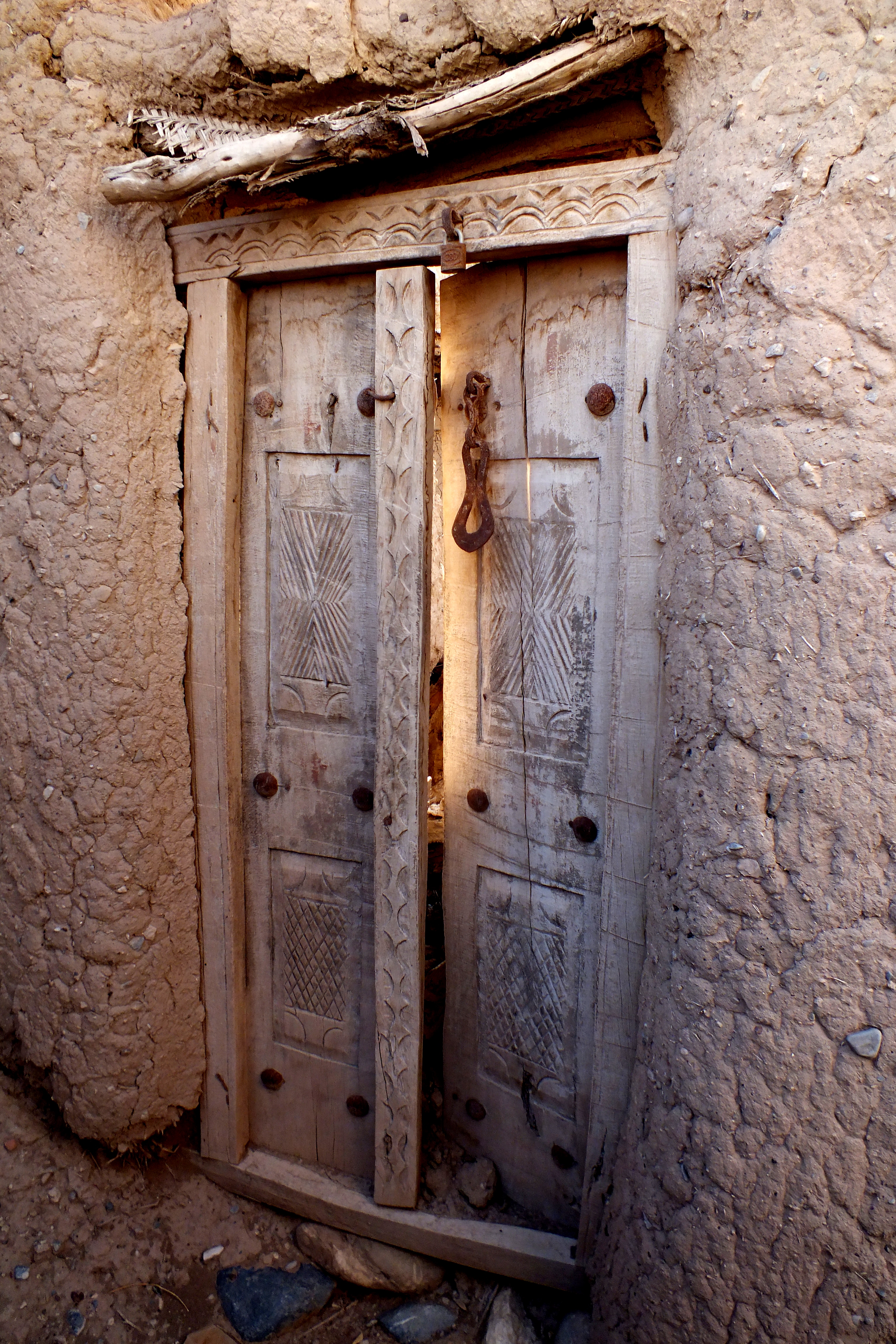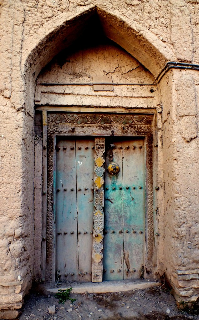 This door was just inside – what beautiful work!The falaj flows all through the village -see how narrow the street is – it takes up most of the space. We were turning back here, as the water was milky with soap – people were washing in it just around the corner, and we could hear them talking and laughing.Here are some shots of the buildings
