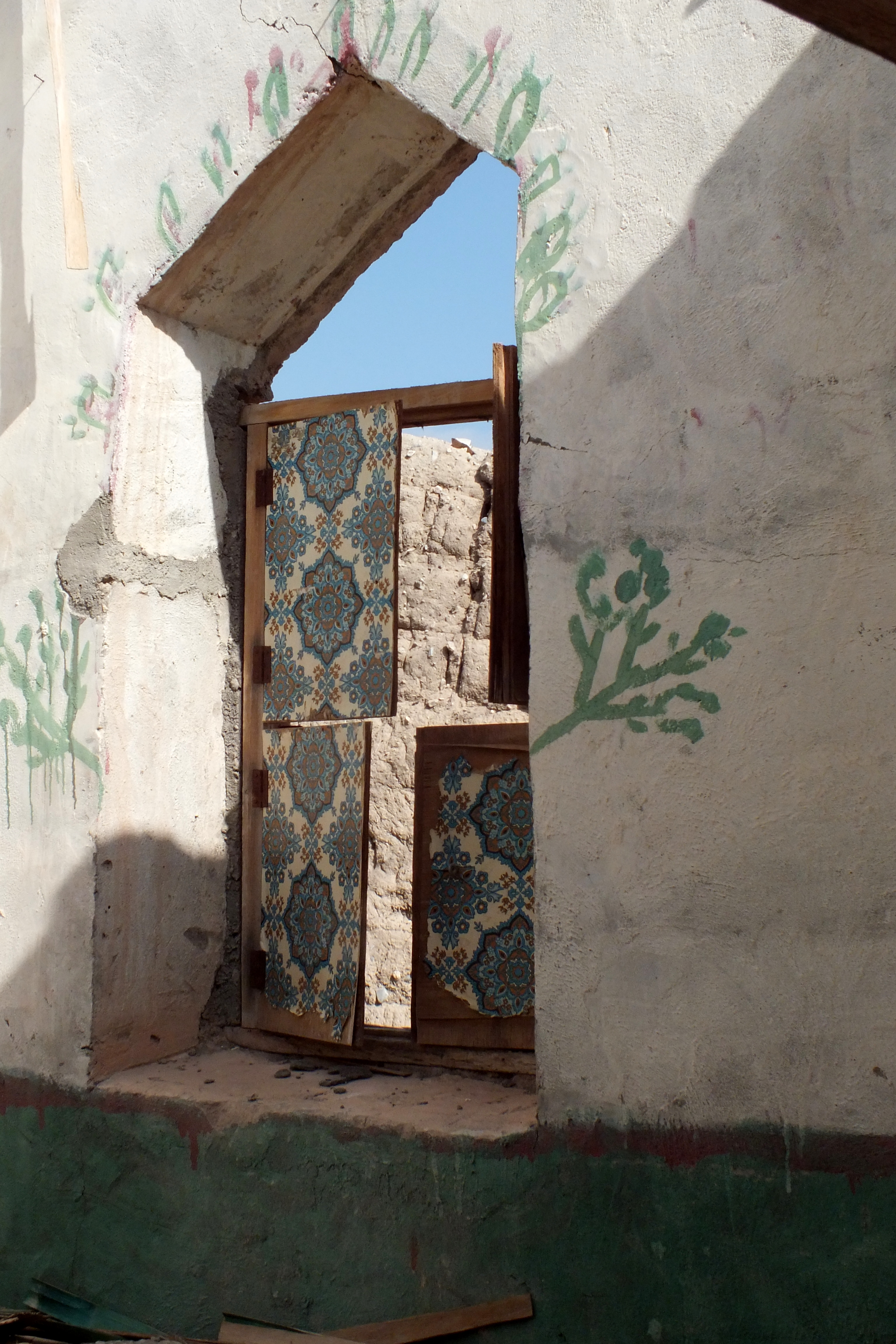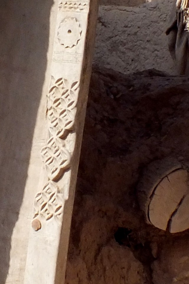 We walked all around the town, looking through windows,poking into doorways, taking photos of old, beautifully carved wooden doors and frames,   checking out the way they used to make roofs and mud walls.One building had painting on the walls, and tile-designs on the inside of the shutters.David and Robert climbed up to the highest tower – they said the view was great, and they got a better idea of just how the town was organized.