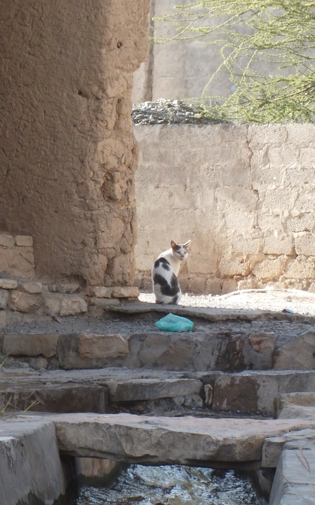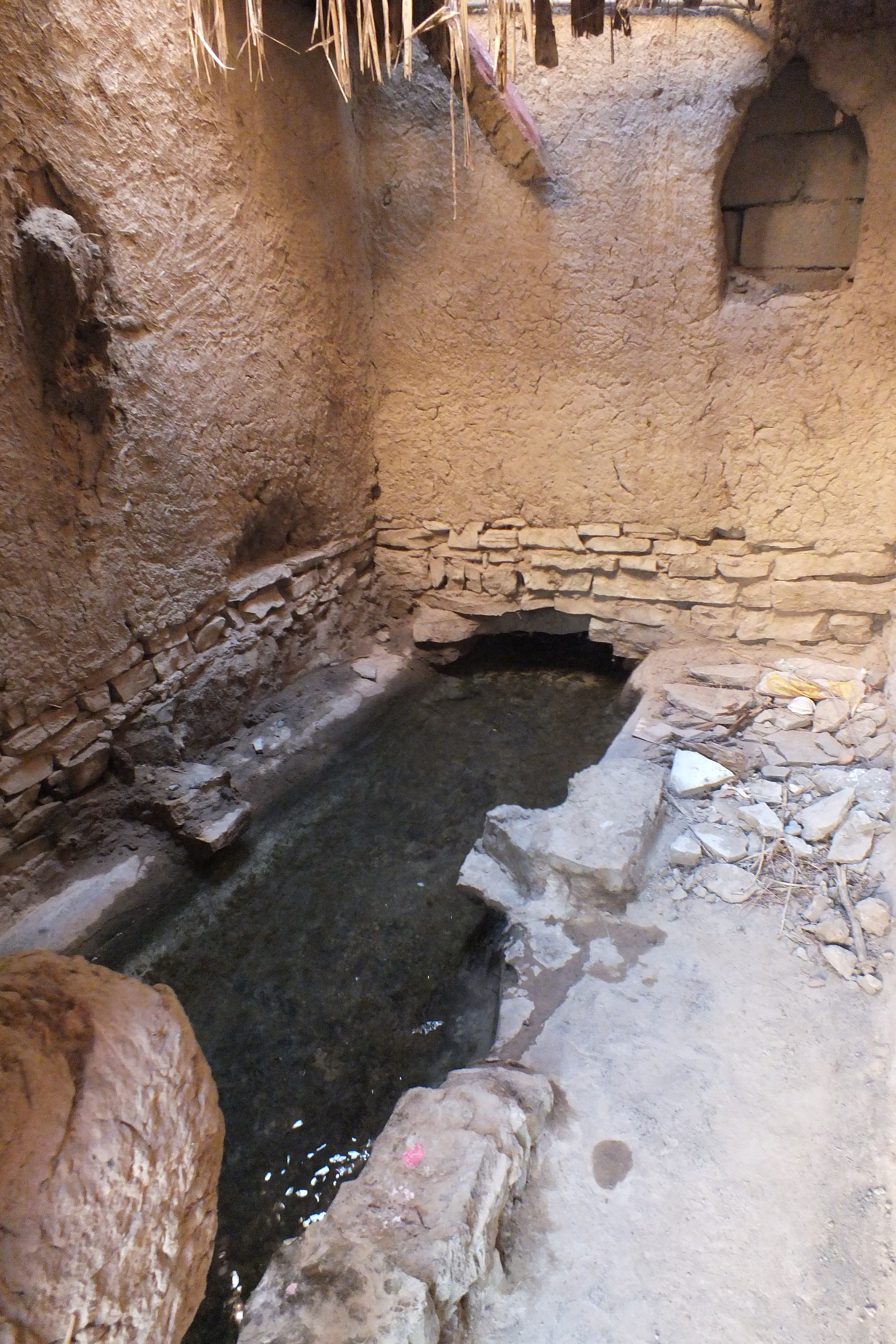 A cat outside the bath houseInside the bath house – the falaj goes right through.