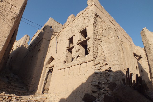 Pretty soon, we were there – and around the base of a hill was an abandoned mud-brick village. They are obviously planning to make it an historic site, as there was a paved parking lot in the front (now, WHY couldn’t we find the road that led to it???) Some of the houses had apparently been lived in not so long ago, as there were power lines.