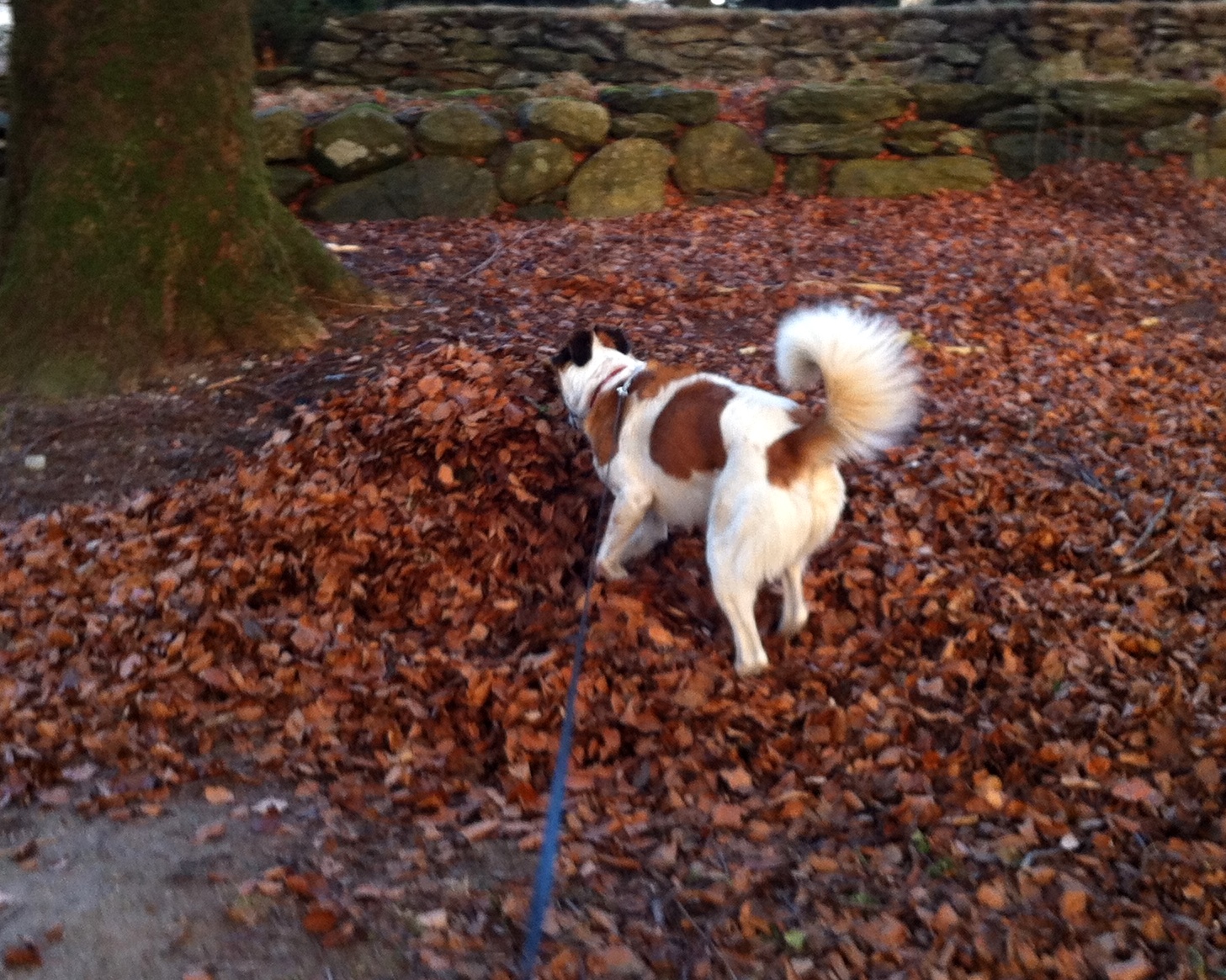 kicking up the piles of leaves just like a young child. I was afraid he would be too cold to enjoy it here, but he has surprised me.