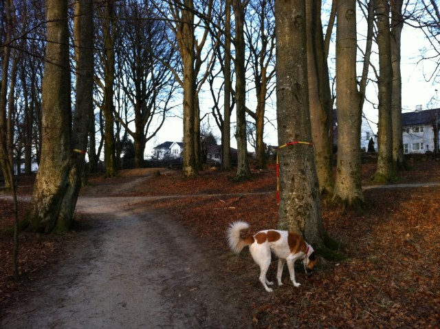 Wednesday, Snoopy and I took a long walk. It was -7 C, but there wasn’t much wind. There is a lake called Mosvatnet very close to our apartment – so close we can see it from the windows. The path that encircles the lake is about 3 km long, and the scenery is lovely. It is a very busy place, with joggers and cyclists making their laps, and walkers, many giving their dogs a welcome fresh-air walk. the sun was shining, so it was a perfect day for a stroll.