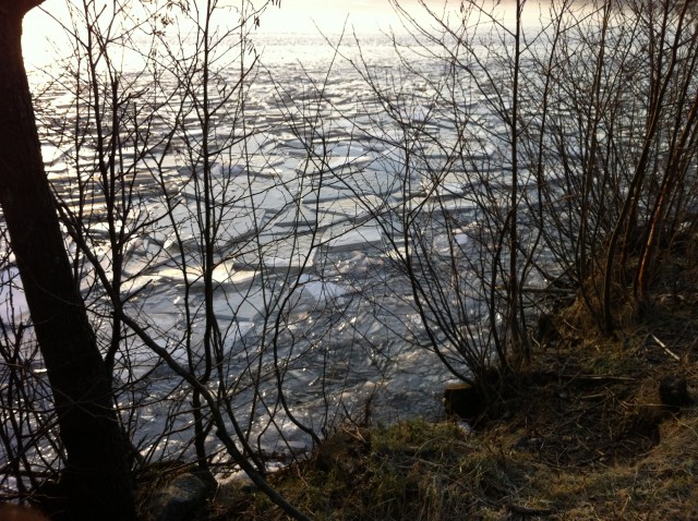 Ice built up along the shore – apparently there was a wind sometime, and the ice blew in from the centre of the lake –