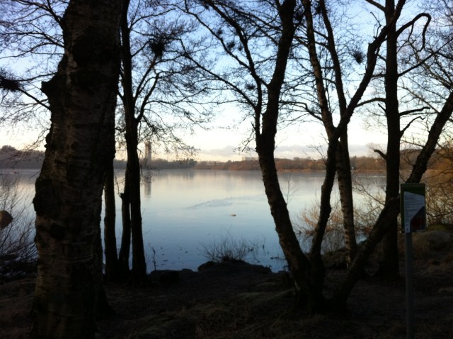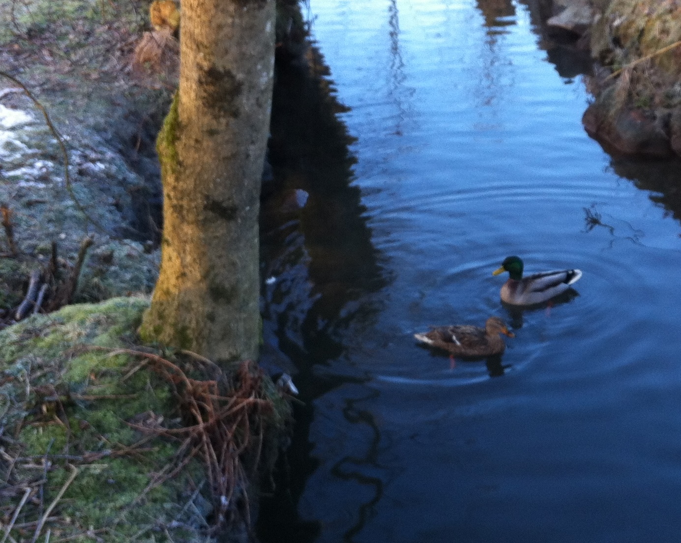 A stream runs into the lake, and it was still ice-free – lots of ducks and swans around.