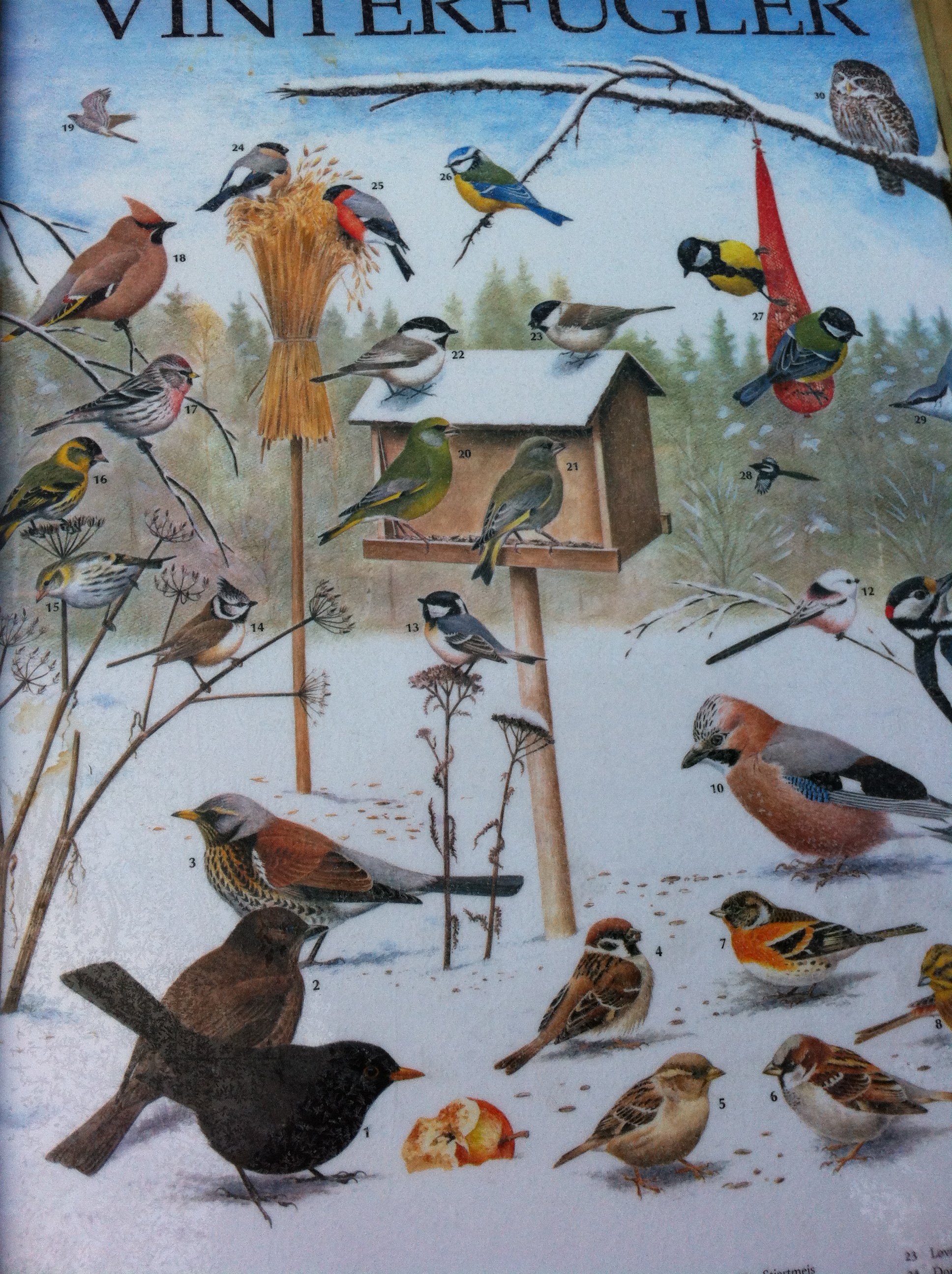 In Stavanger, they don’t usually get much snow – mostly rain and temperatures not much below zero in a normal year. I noticed birds on the chart that I was familiar with in Canada too – but can’t remember the names after 5 years.
