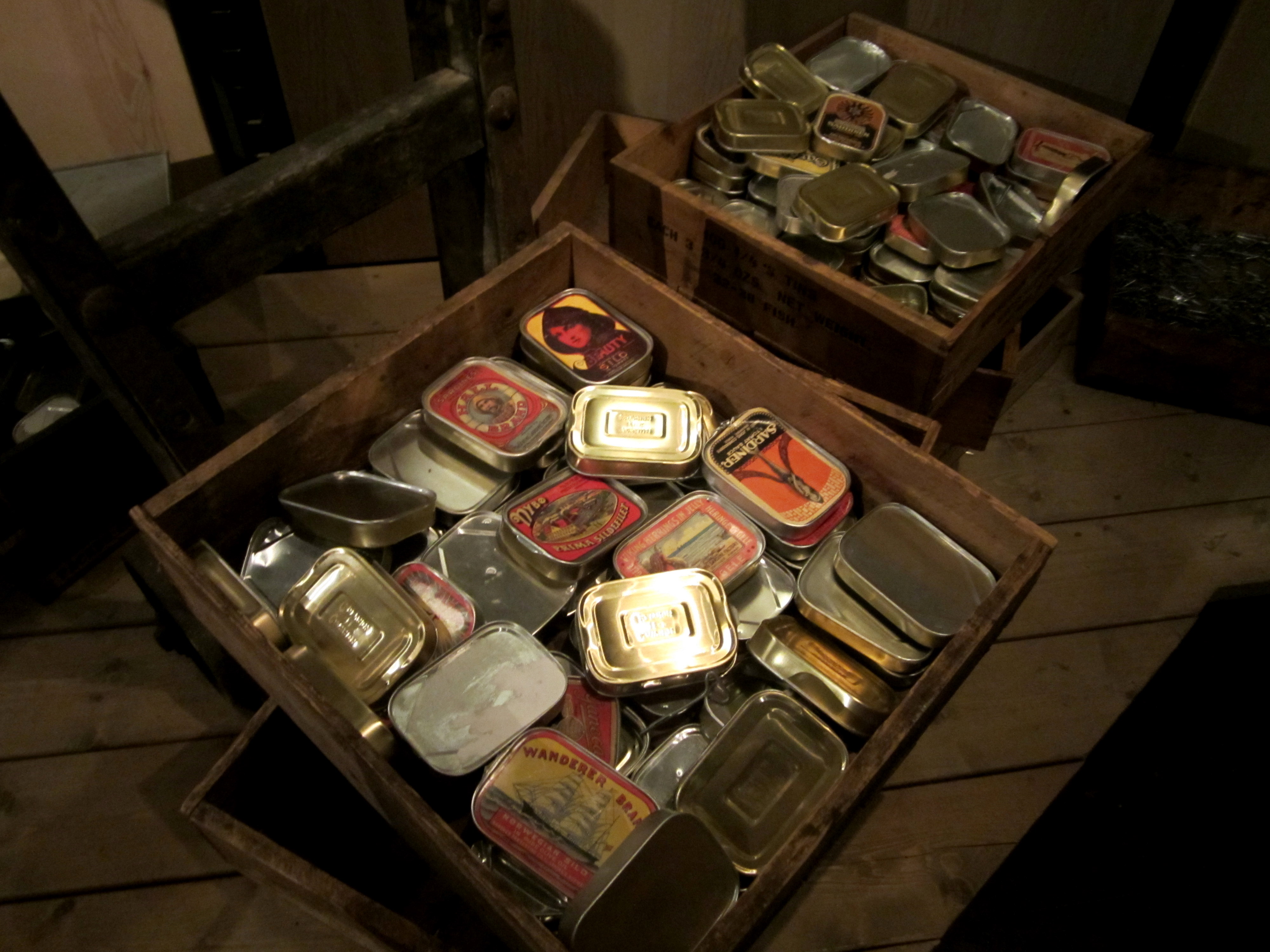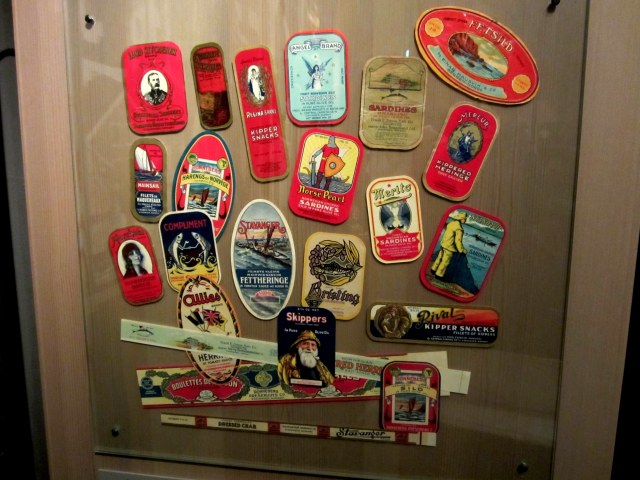 A tableau about the brisling – small fish of the herring family which were caught and canned in Stavanger in the 1800’s – colourful tin lids –