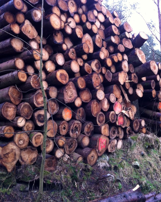 Logs cut along the road – fairly small. Wonder what they will be used for?