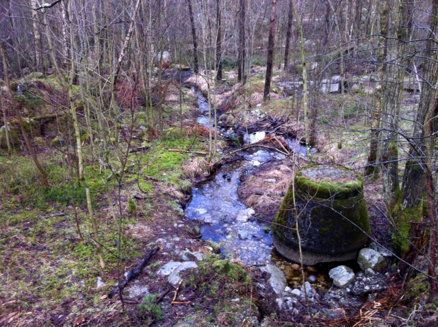 Through trees – balancing on rocks to cross a stream…