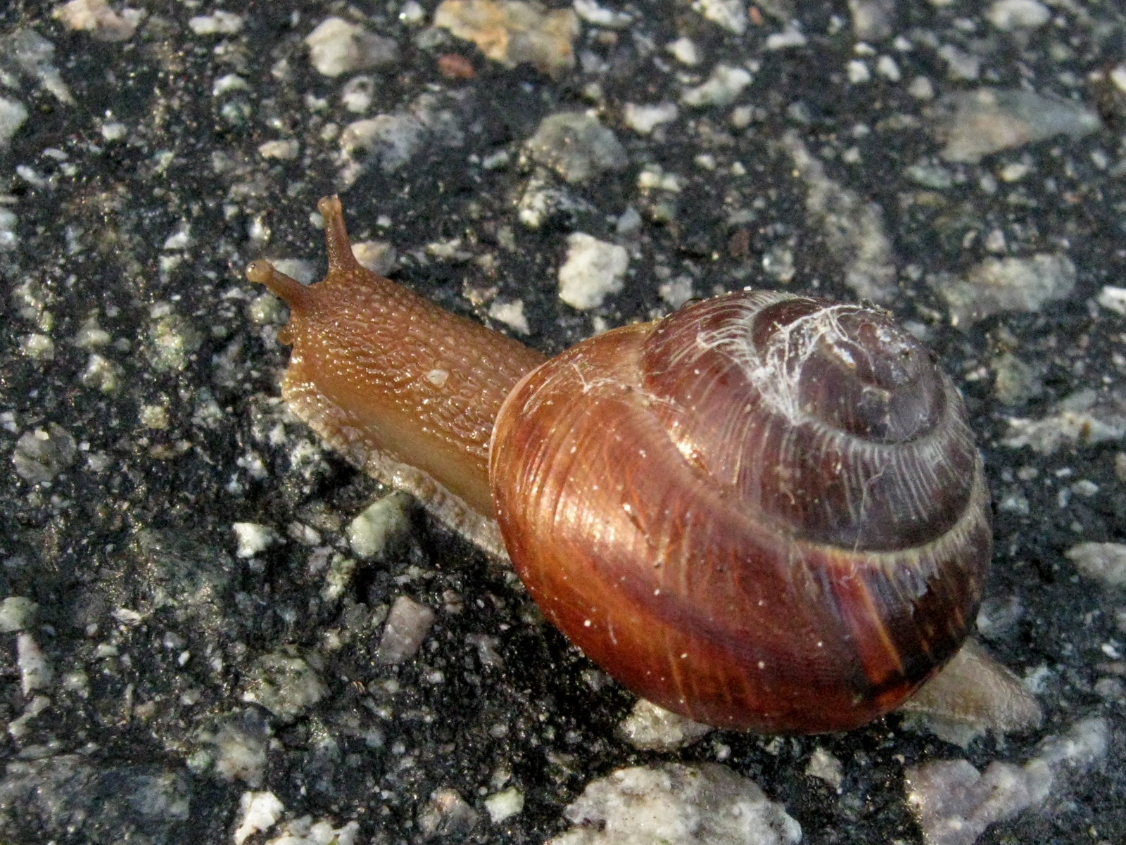 We’ve had a lot of rain lately. The stream is running almost as high as we’ve seen it. When I emptied my rain gauge Monday morning, there was 34mm – that was just since Sunday evening.  The snails are out and about today – here is one fine fellow out for his morning walk.  While reading my beginner reader book from the library, I’ve learned that this is a “snegel”.  His “hus” was about the size of a quarter – about 2 cm across. Some snail shells here have bright yellow stripes.