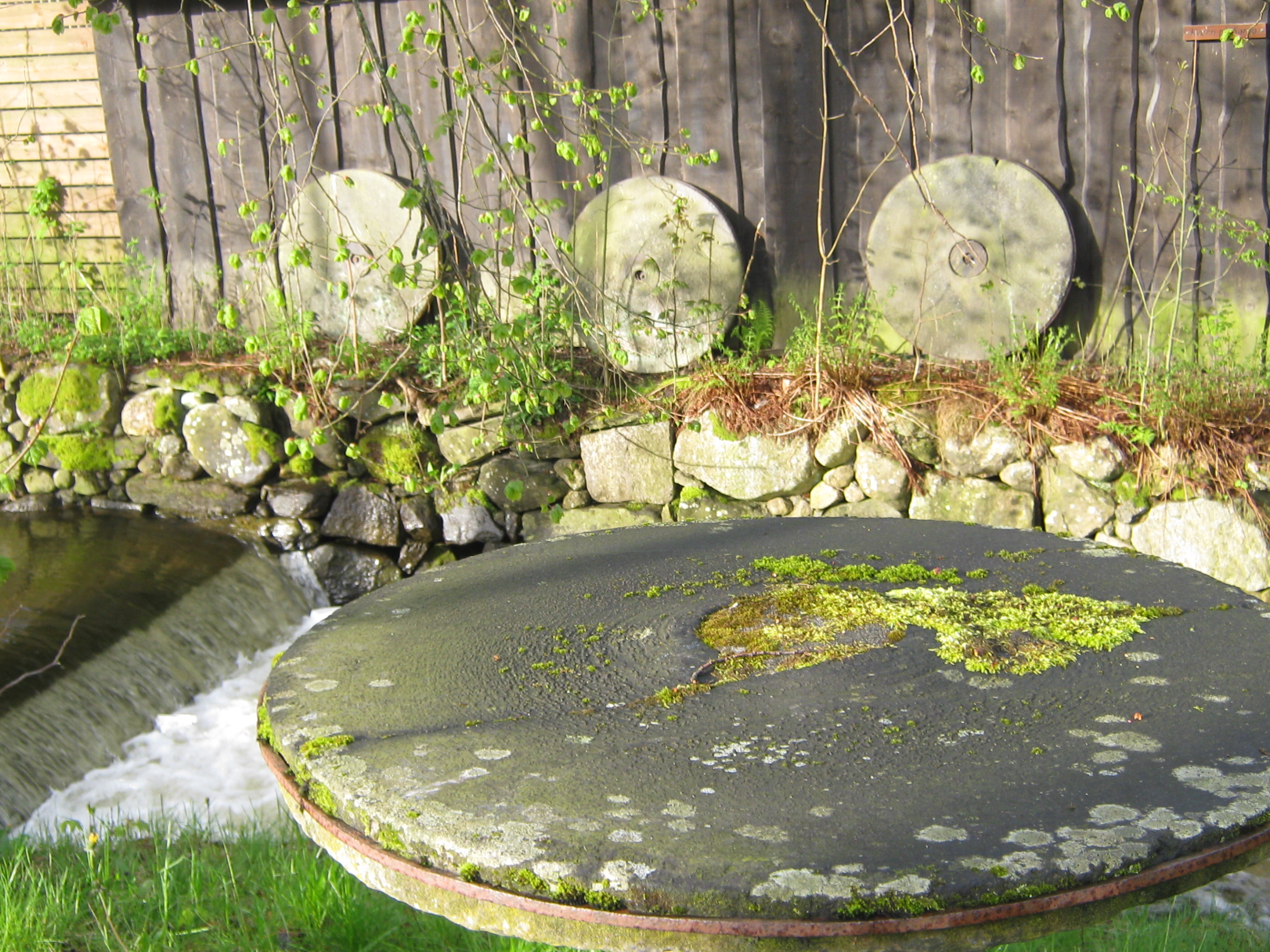 And, sooner or later, I remember – or take the time – to look things up to find out what they are.  Take this photo of a sign that I took in March – always planning to check and see if “mølle” meant “mill”- and never thinking about it when I returned home.  This morning, I looked up the translation on my phone – and yes, of course, it does…… and THAT is why the mill stones are along the wall, and a small table is made out of one on the path side.  By the way – the mill was just demolished in the 70’s – not that long ago, really.