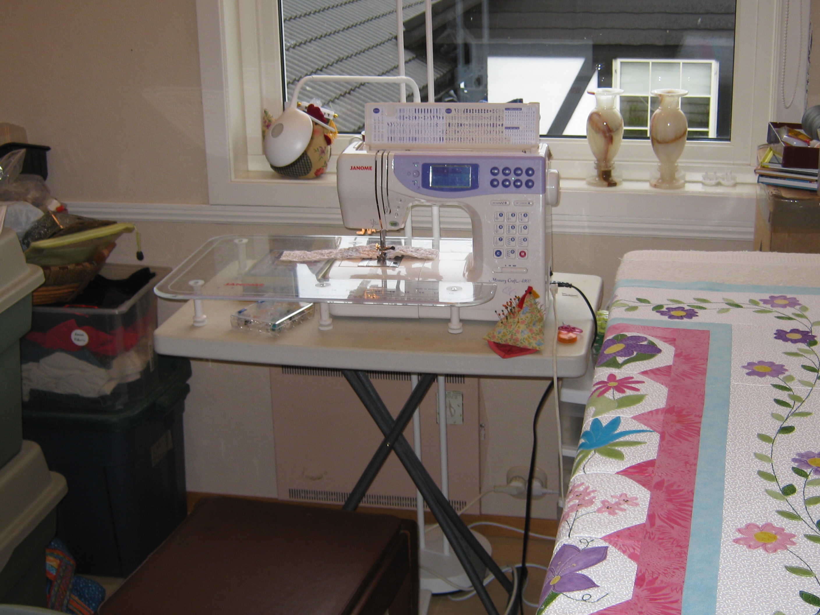 I’m sure before long, you’ll be spending more time in your sewing area than any place else. The quilt looks beautiful – good luck!