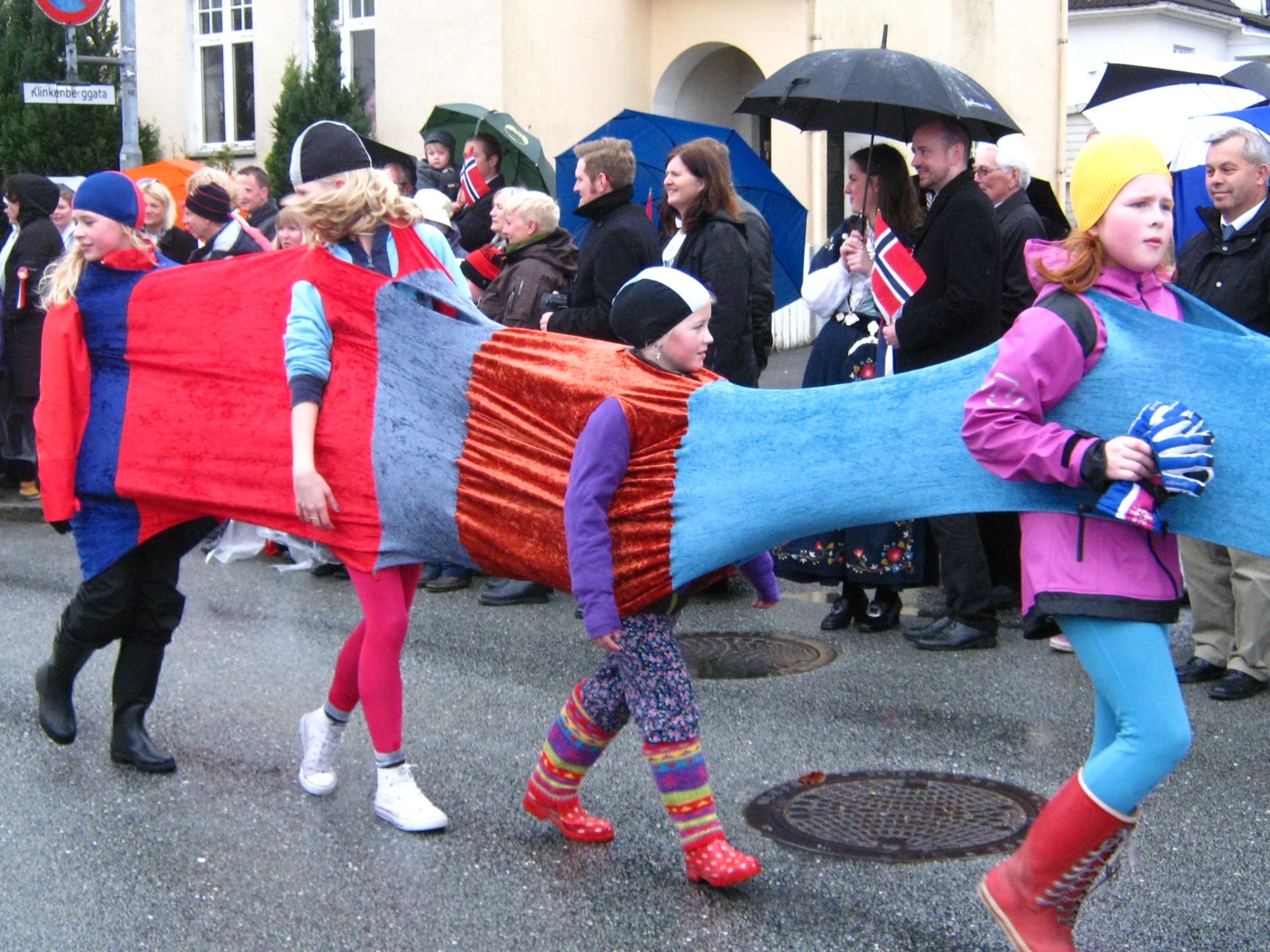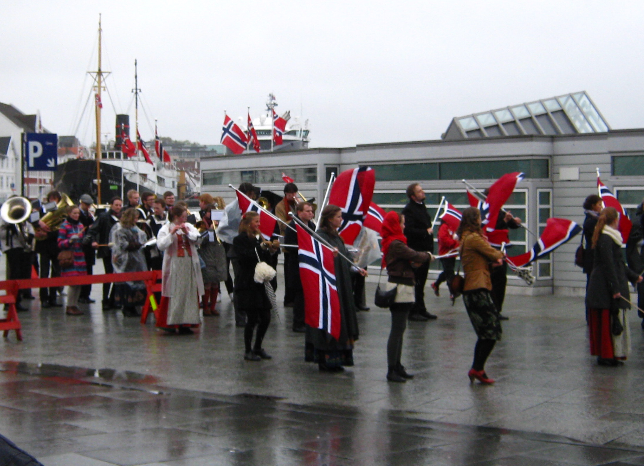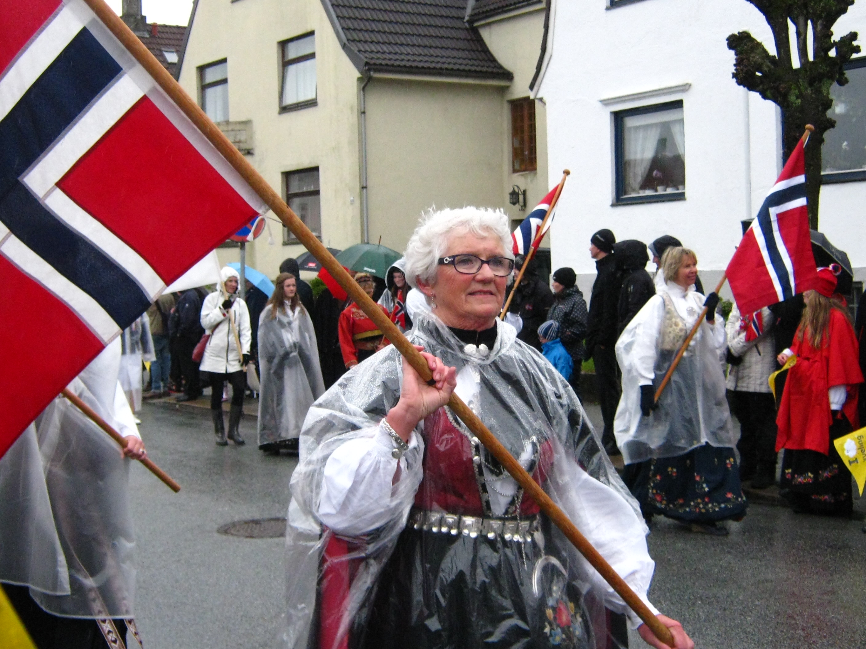 The Chamber of Commerce in Stavanger arranges a lot of events for expats to help them understand Norway and how things work here.  They had a special pasta-and-parade gathering – nothing formal, but a good way to meet others and have someone to watch the parade with.  We met up with a lady I’d met before and her husband, and it was really nice to have someone to talk to.  The pasta was yummy…… and then we walked to a point about halfway through the parade route.