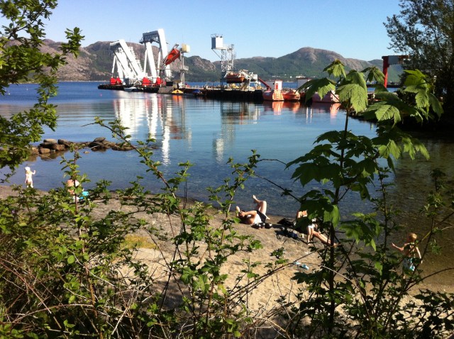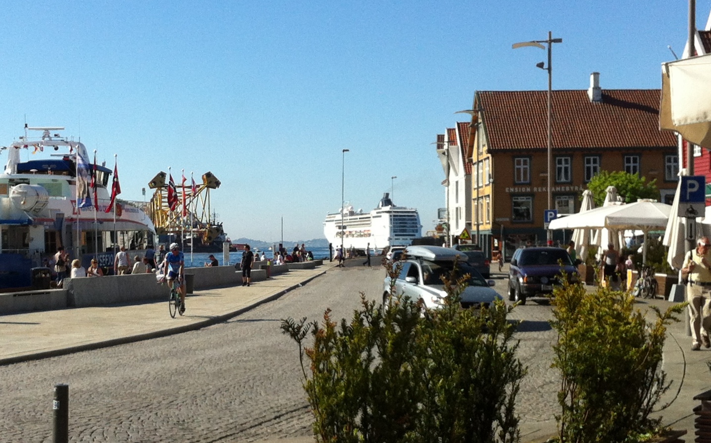 We have enjoyed over a week of warm, sunny weather.  Sunday was billed as the last of the 20+C weather, so we decided now was the time for another long ride.  Rather than going overland, up hills and down, we opted to ride along the fjord to Stavanger.  There is a bike path the whole way, and most of it is off the road, or on very quiet streets.