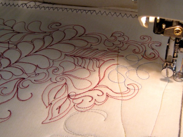 A bit of doodling, and I’m done for the day.  now, to get the backing and batting ready for my first challenge, and I’m back where I want to be – quilting again.