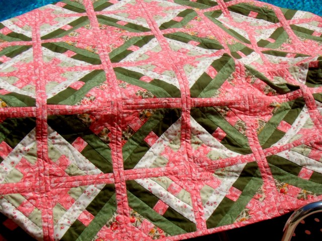 I took an older quilt along for show-and-tell – a summer quilt with an interesting quilt-as-you-go technique, and had several people quizzing me on its construction. It’s called “Woven Wonder Quilt” by Prairie Sky Quilting.