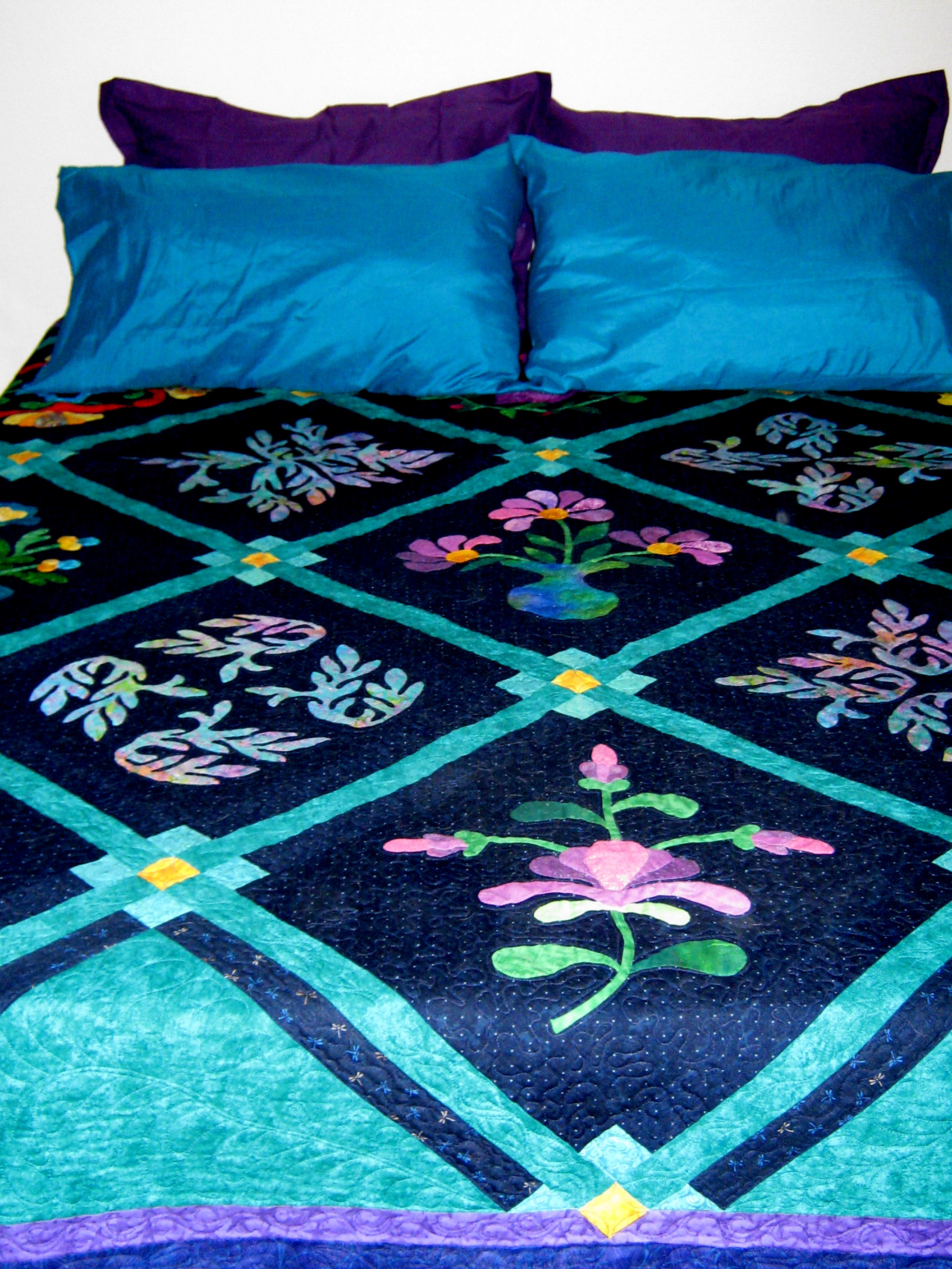 Glad to see you back – hope you enjoyed your summer vacation. I’ve missed learning more about Norway and Stavanger in particular. I love the purple and teal with your quilt – WOW!