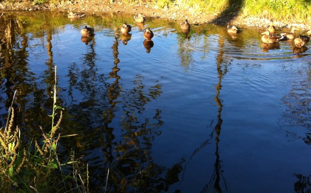 Snoopy and I went on a 5.3 mile walk on Tuesday – calm with lovely reflections in the water along the stream and on Stokkalandvatnet  Lake.  The ducks were out sunning themselves. We walked as far as Pluto – almost 2 hours in the sunshine.