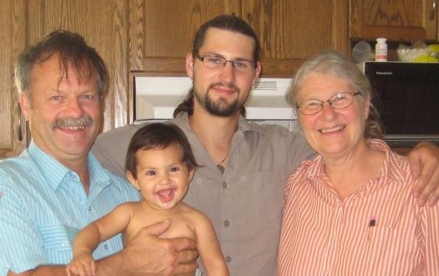 Daddy, proud Grandma and Grandpa and our little angel.