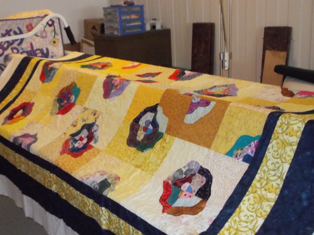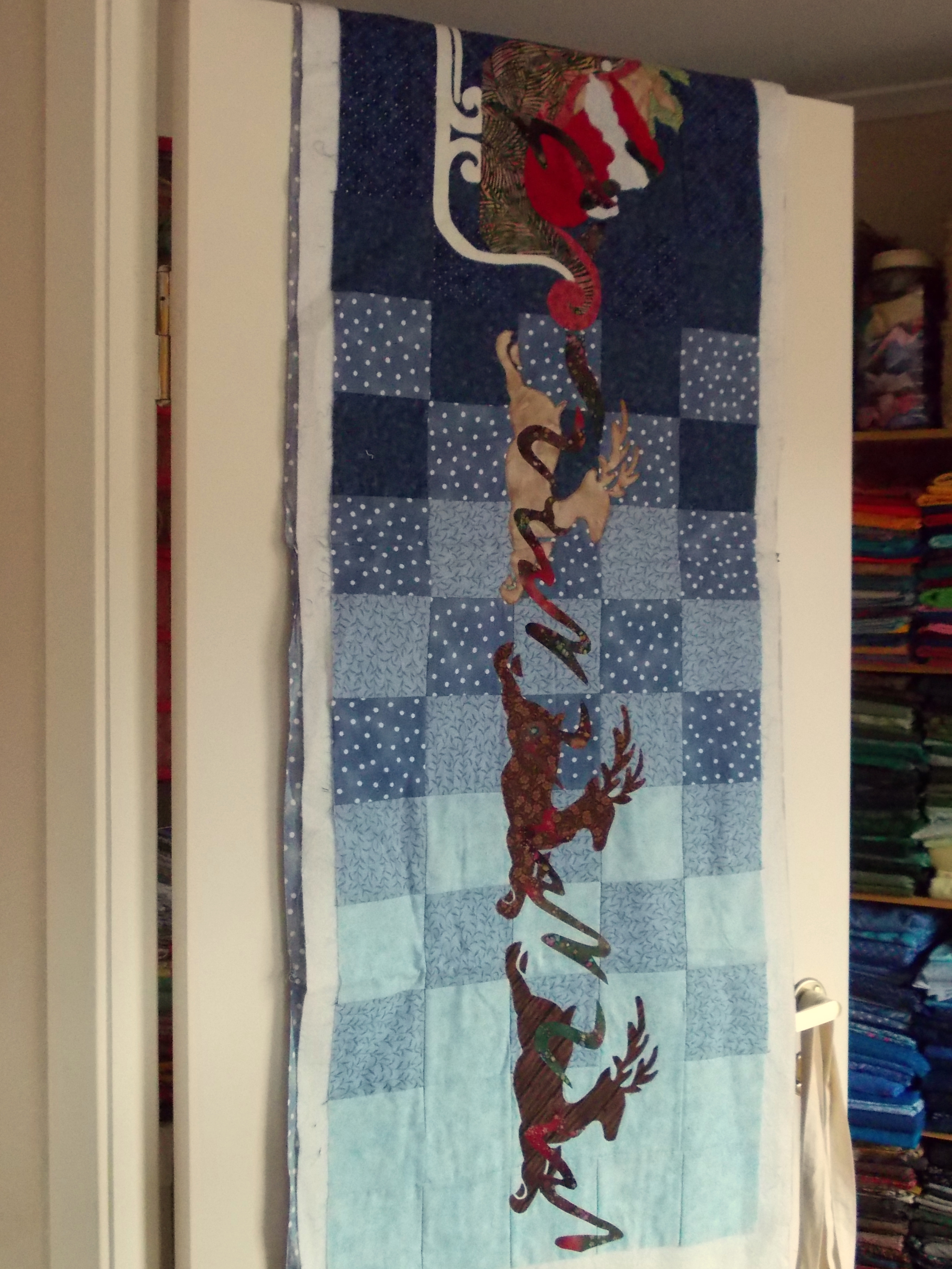 And this Christmas wall hanging needs the quilting/machine applique finished. I should actually have it done for Christmas this year. I remember buying the pattern in St. John’s, Newfoundland, and thinking I’d make it for my sister and her children. They will be 20, 19 and 17 this Christmas… I guess I’ve waited too long.