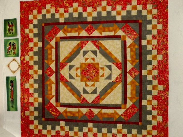 This quilt has been on my design wall for a week – it was a mystery quilt from Muscat last year, and I am waiting for it to whisper back to me how it needs to be quilted.