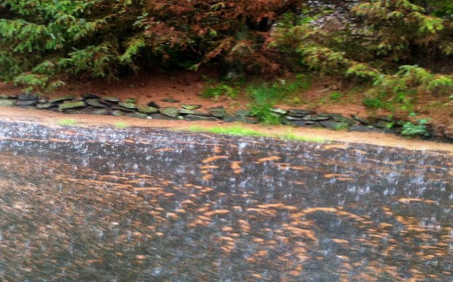Then the thunder roller, and the heavens opened. By the time I got home, I was drenched…. here is the scene in front of my garage as I huddled under the overhang, getting out my keys. Thanks goodness for the mud room downstairs.