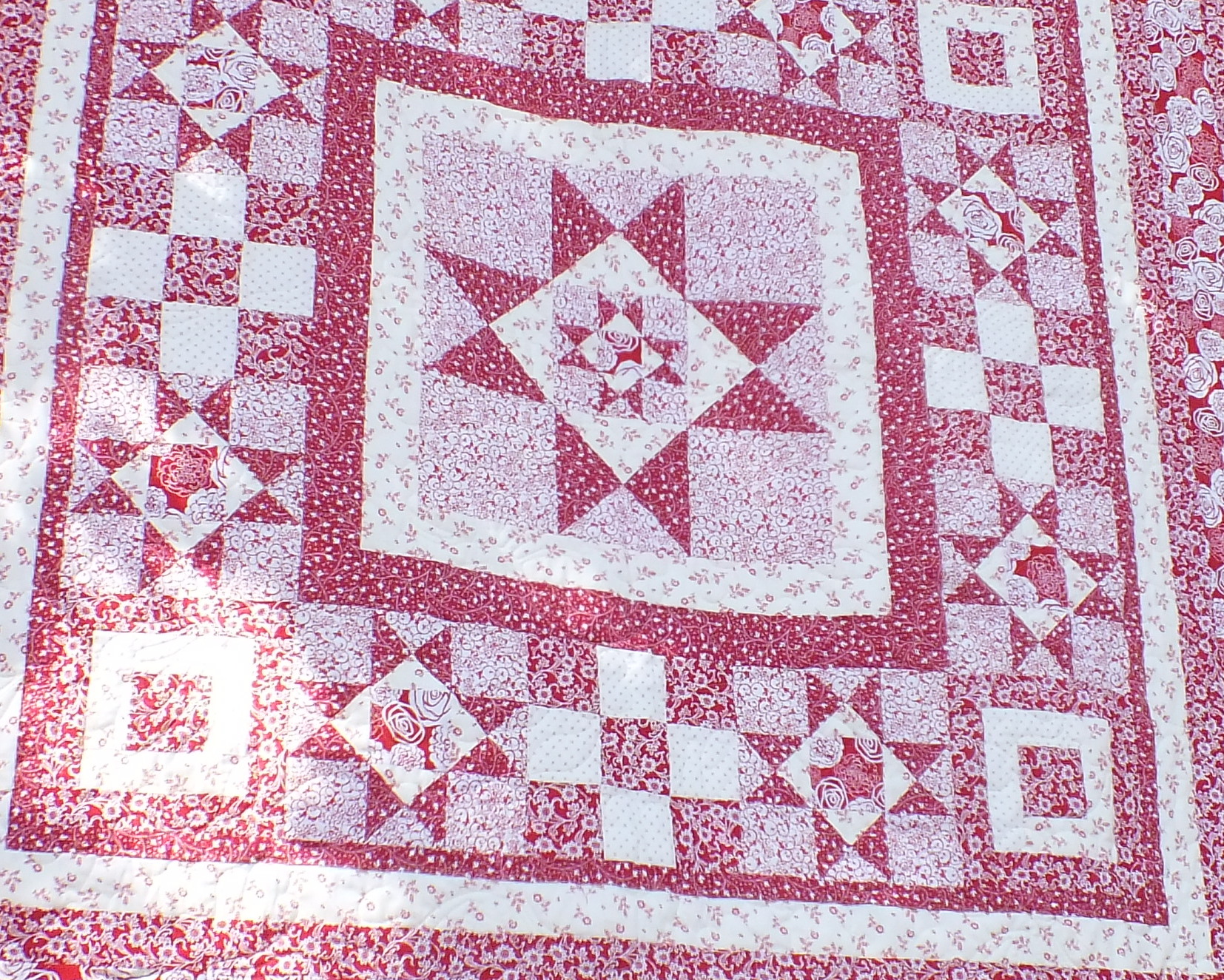 This applique quilt was stunning in its colours and values. I think maybe it was done by a very experienced quilter whose eyesight is failing.
