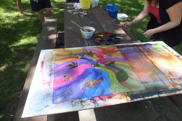 One lady does a lot of sun printing. She sells the paint in her shop – and was giving people a chance to try it out… alas, all her samples were taken when I got there. It looked like fun. You just spread the paint on fabric,