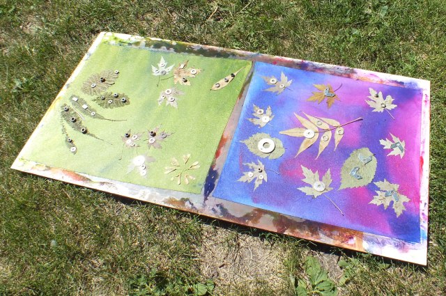 then put objects (like leaves) on top and weight them down.
