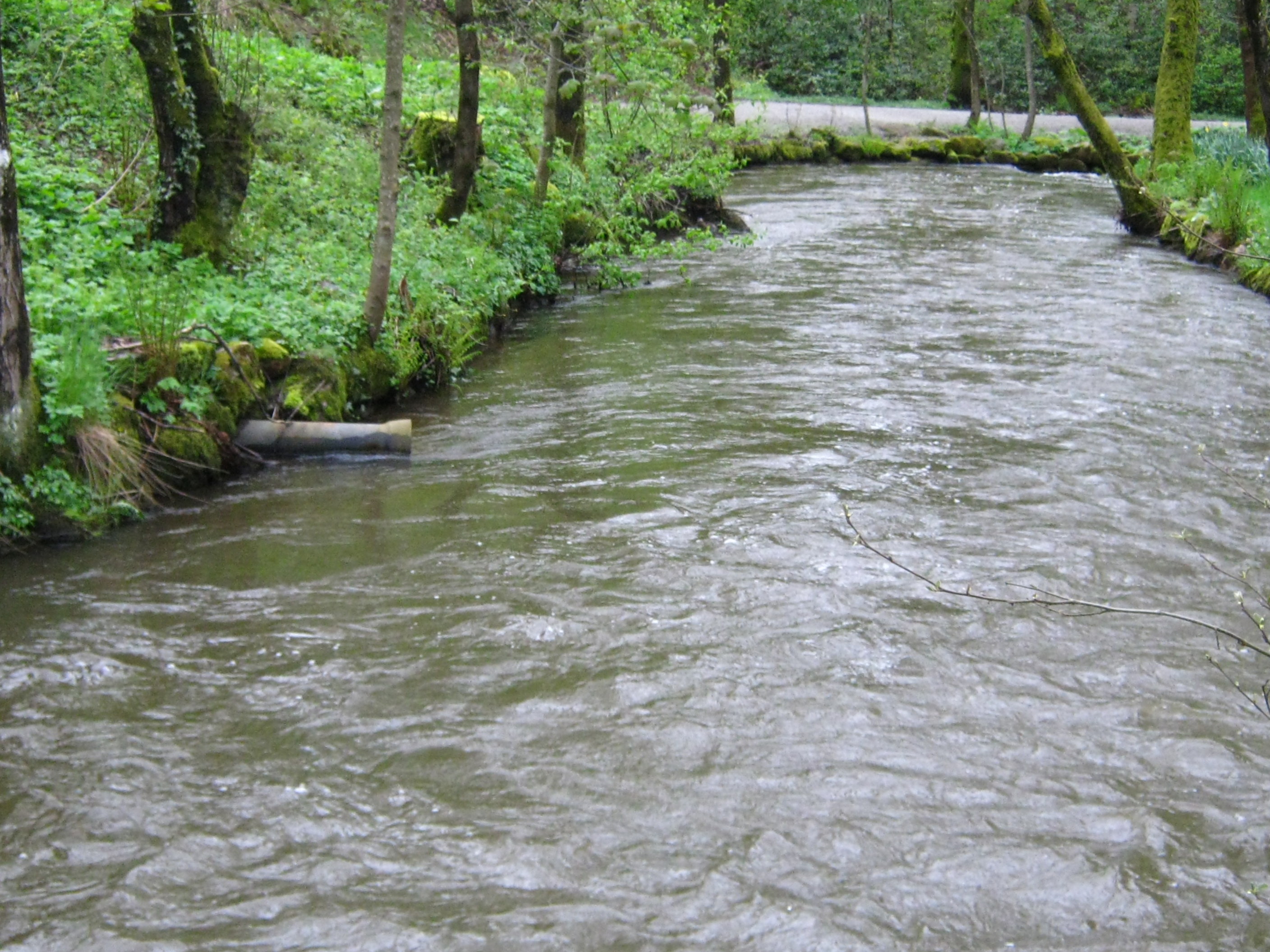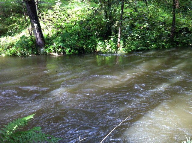 There is a 8″ drain pipe in this bank which I always use to gauge just how high the water is….